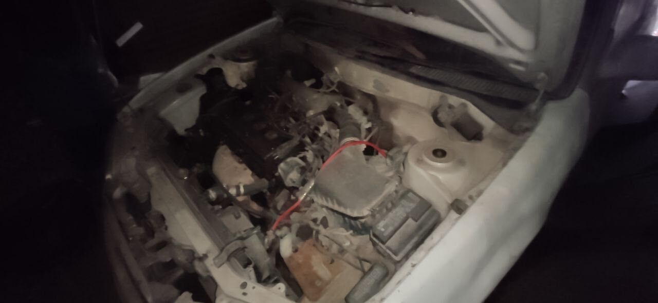 Отсутствуют и повреждены задние световые приборы, имеются вмятины и повреждения дверей, крыльев, порогов, капота и бамперов. Решётка радиатора отсутствует. Лобовое стекло с трещинами. Колёса в наличии, состояние шин удовлетворительное.